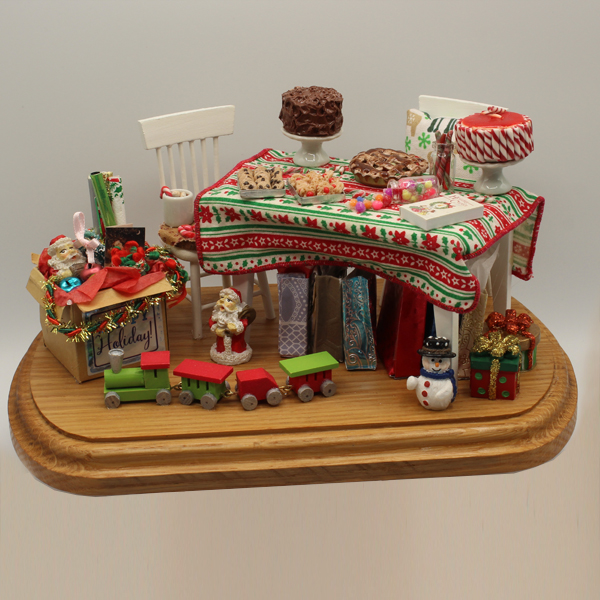 Dawn was introdused to the miniature would by helping a friend, she did not step in, she jumped in. For the last three years she has been creating and growing with her miniature creations. Dawn has showcased both her unique paintings and detailed miniatures in galleries and events accross Ontario. Dawn Bank as a self taught miniaturist works primarily on food creations and dollhouse furniture but she is always up for any challange. Dawn primarily works in 1:12 and 1:24 scale.